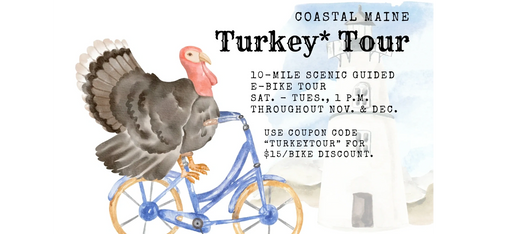 A little cold never hurt anyone! Join us for the Coastal Maine Turkey Tour, a special fall edition of our regular coastal e-bike tour. If you're willing to brave the chill, we're willing to take you out for a breathtaking scenic e-bike tour of the Kennebunkport coast.